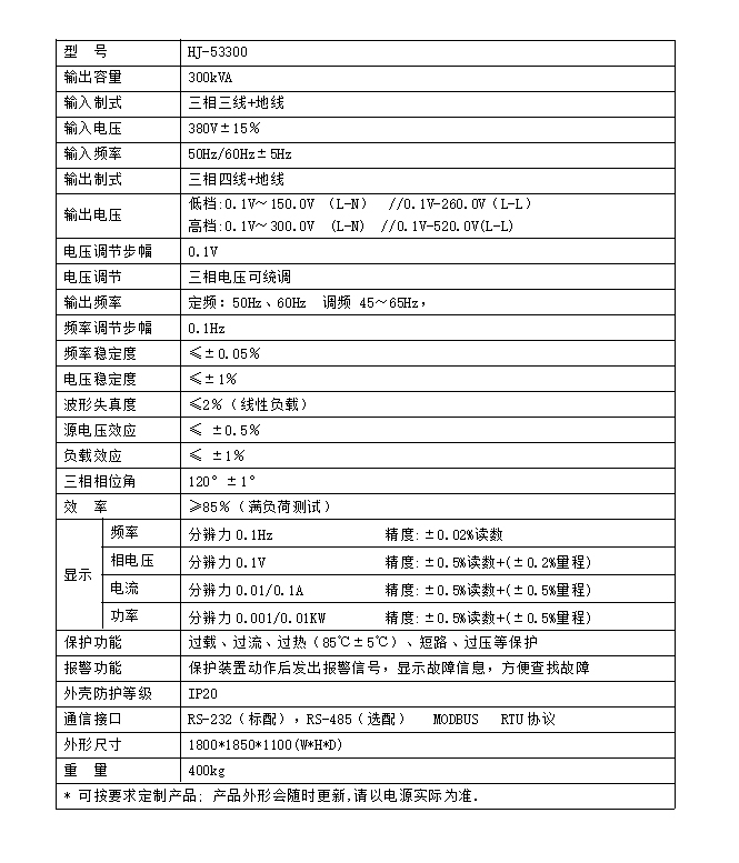 三相智能程控变频电源300KVA